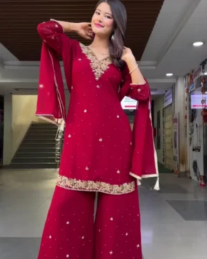 Partywear Kurti | Elegant Wine Range with Handcrafted Motifs