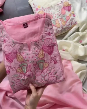 Embroidered Anarkali – Luxurious Coral Edition with Intricate Thread Embroidery