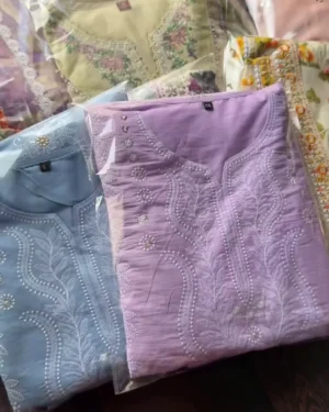 Floral Embroidered Kurti – Chic Peach Collection with Golden Embroidered Dupatta