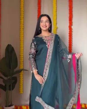 Full-Length Anarkali Dress | Festive Teal Line with Sequins & Stone Detailing