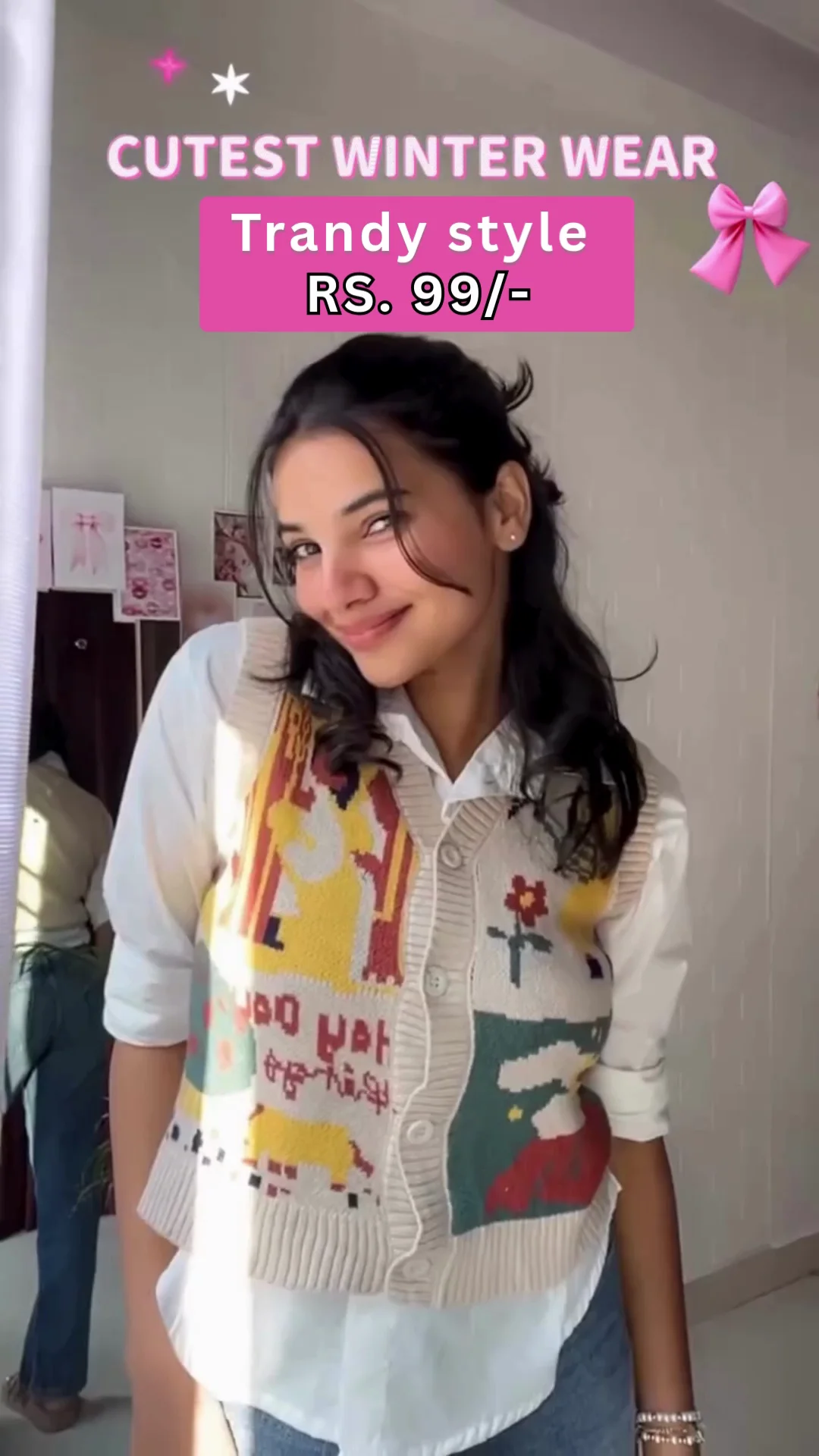 + Free ShippingEmbrace a cozy yet fashionable aesthetic with this unique knitted cardigan vest, designed to bring a pop of personality to your cold-weather wardrobe. Featuring a playful mix of retro-style graphics and a classic button-down front, this versatile piece is perfect for those who love “trandy” style and effortless layering.