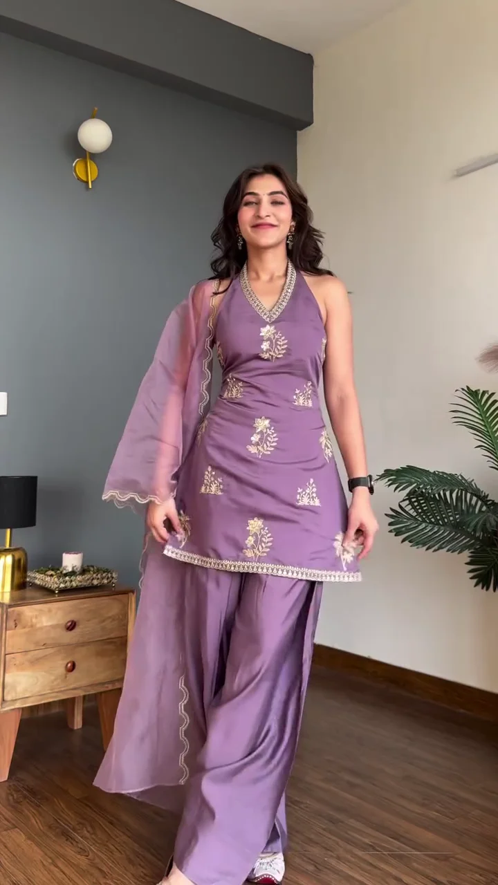 Flared sharara pants made from soft, flowy fabric, ensuring a graceful silhouette.