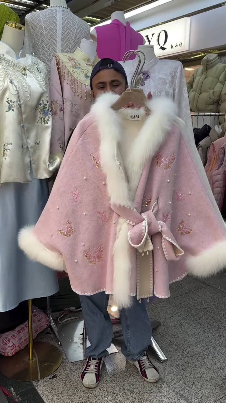 The silhouette is inspired by traditional eastern “Hanfu” styles, offering a flowing, regal drape that flatters any figure. Adorned with shimmering butterfly embroidery and delicate hand-sewn pearls, this cape provides a level of sophistication that elevates even the simplest outfit. Whether layered over a cocktail dress, a traditional gown, or paired with winter boots, this wrap ensures you remain the center of attention while staying comfortably warm.