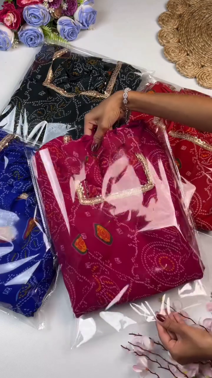 Care Instructions: Hand wash recommended to preserve Bandhani print and mirror work detailing.