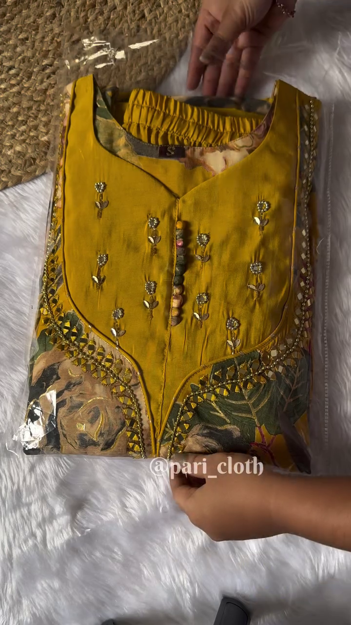 Vibrant Mustard Yellow Kurta: Adorned with floral prints that add freshness and charm.