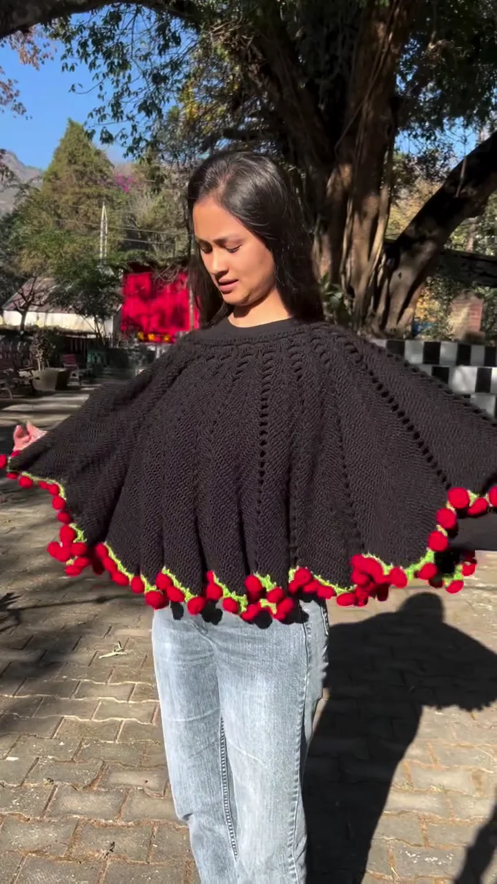 + Free ShippingMake a bold fashion statement with this stunning Handmade Crochet Floral Poncho. This isn’t just a wrap; it’s a wearable piece of art. Designed with a sophisticated black knit base and adorned with vibrant, 3D crochet red roses, this poncho brings a touch of romantic elegance to any outfit.