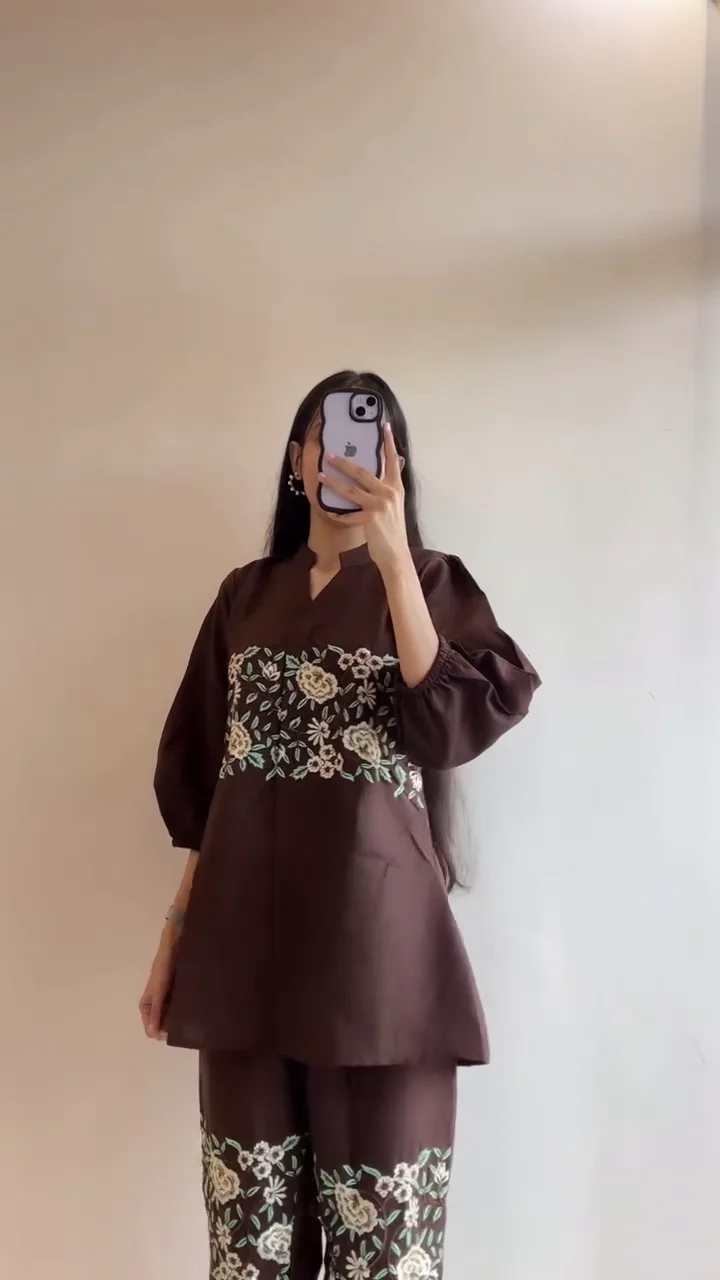 Chocolate Brown Ethnic Set – Includes kurta and pants with intricate embroidery detailing, providing a sophisticated and traditional aesthetic for festive or formal events.
