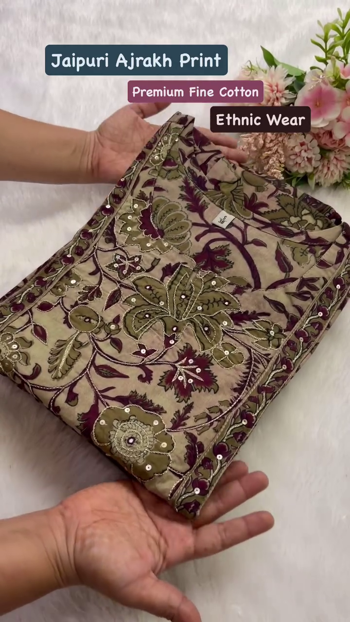 Features authentic Jaipuri Ajrakh prints known for their heritage artistry