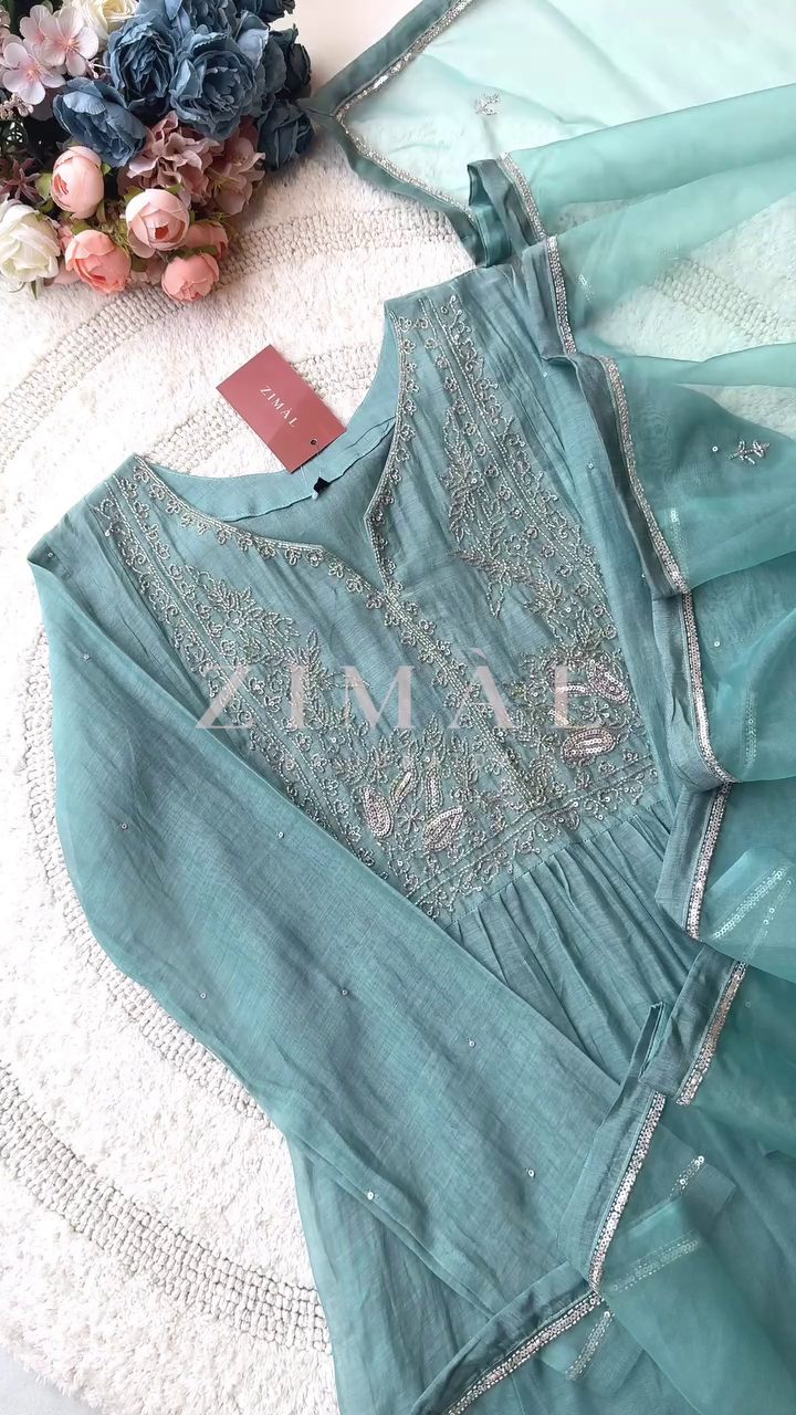 Intricate Embroidery – Features fine threadwork that adds a level of artistry, combined with delicate sequin highlights for a subtle sparkle.