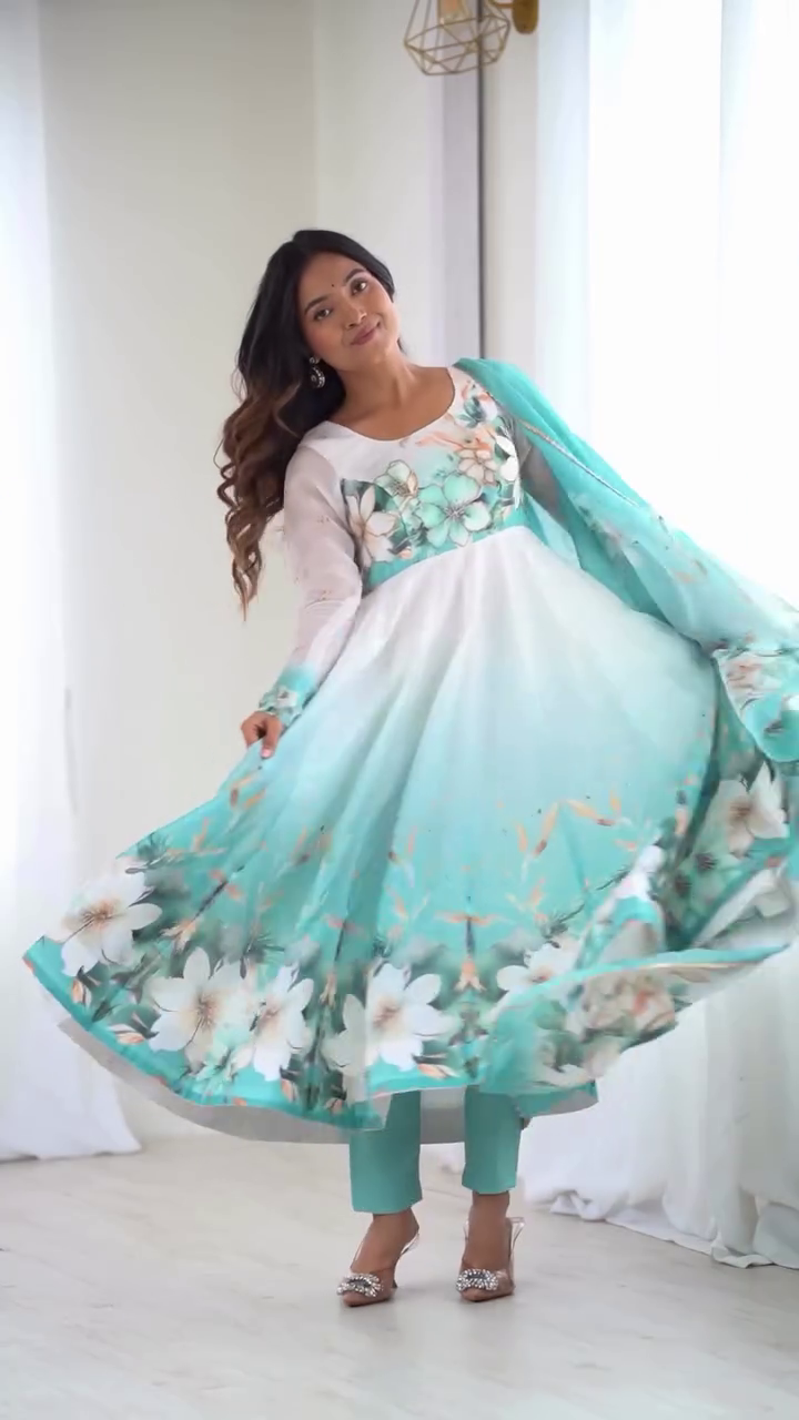 Elegant Anarkali Design – Features a flowing, flared silhouette that adds grace and movement, perfect for festive and formal occasions.
