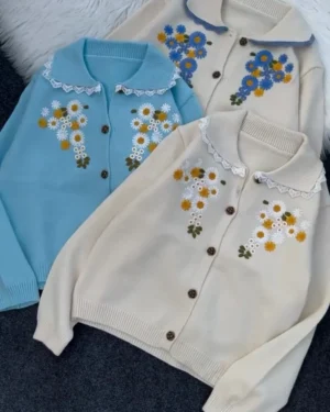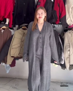 Elegant Knitted Cardigan with Pearl Buttons and Soft Texture – Classy Outerwear for Winter Outfits
