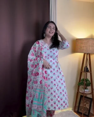 Designer Kurti – Luxurious Coral Range with Mirror Work Neckline